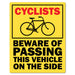 Cyclists Beware Of Passing This Vehicle Sticker Large
